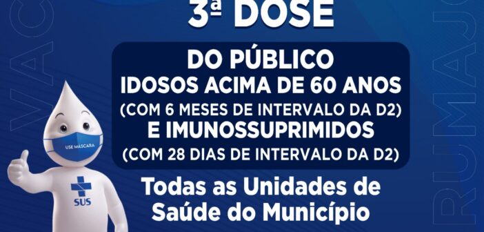 Atenção idosos acima de 60 anos. Chegou a hora da 3ª dose da vacina contra a covid-19.