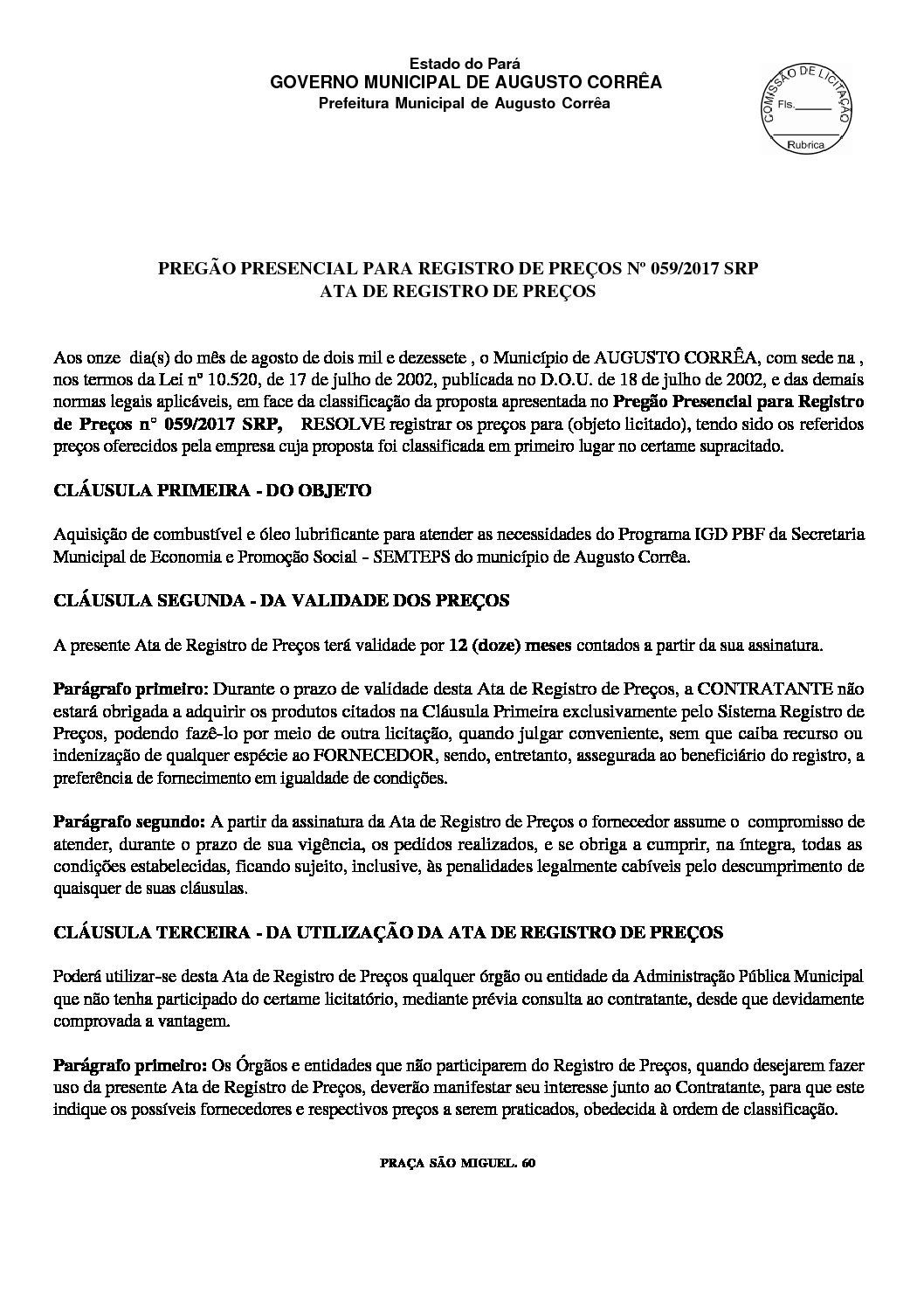 Ata de registro de preço
